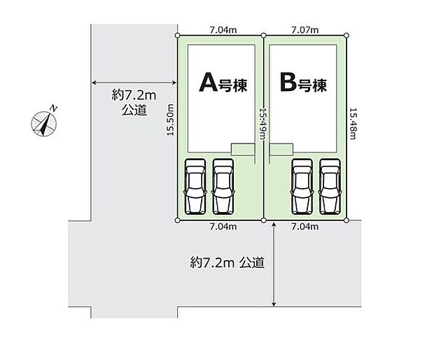 A号棟:南7.2m 西7.2m