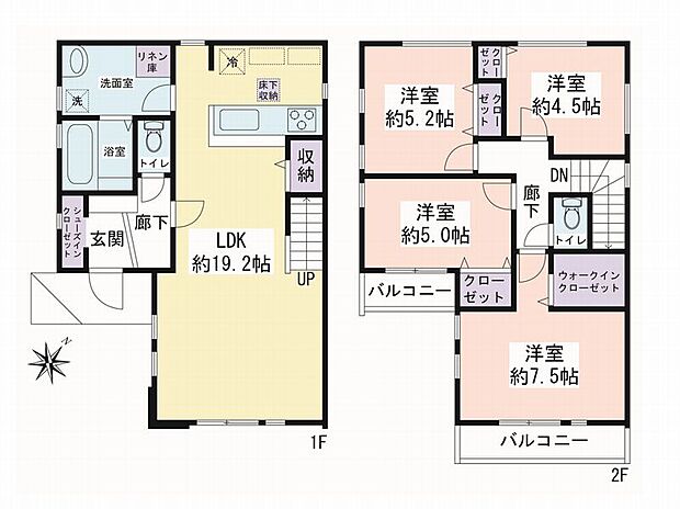 | 間取り | 4LDK 間取り内訳:リビングダイニングキッチン 19.2帖(1階) |
