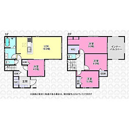 | 間取り | 4LDK 間取り内訳:リビングダイニングキッチン 16帖(1階)・洋室 9帖(2階)・洋室 6帖(2階)・洋室 4.5帖(1階)・洋室 5.3帖(2階) |