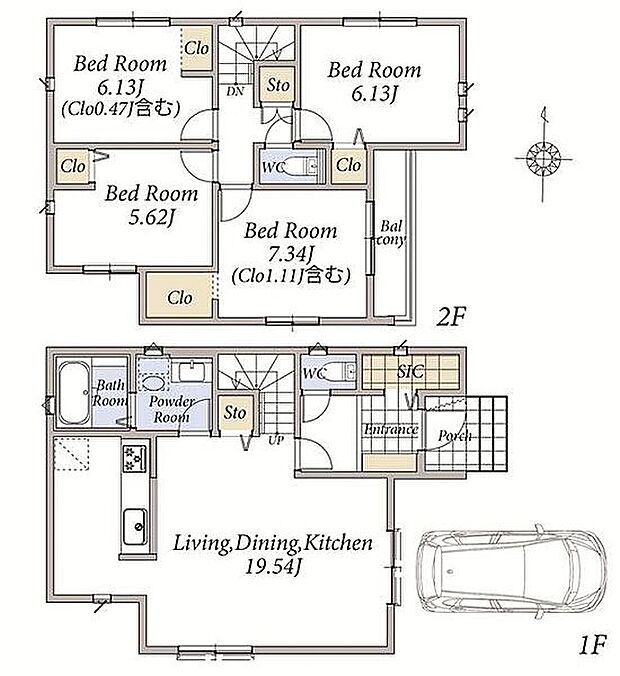 1階LDKは広々19畳。カースペース付、2階建て4LDKの新築住宅です。