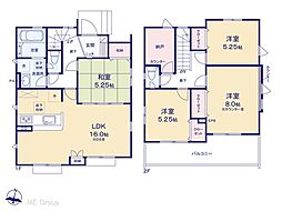 | 間取り | 4SLDK 間取り内訳:リビングダイニングキッチン 16帖(1階)・和室 5.2畳(1階)・洋室 8帖(2階)・洋室 5.2帖(2階)x2・収納(2階) |