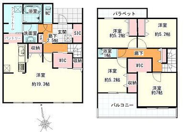 ■WICやパントリーなどの大型収納が充実!■19帖以上のゆったり開放的なLDK■キッチンから水回りへの動線が良い間取り