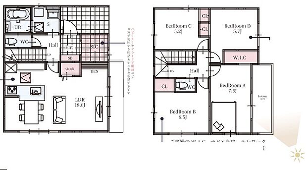 • 「建築条件付き土地」の「建物プラン例」は、土地購入者の設計プランの一例であり、プランの採用可否は任意です。