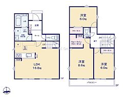 | 間取り | 3LDK 間取り内訳:リビングダイニングキッチン 18.5帖(1階)・洋室 6.5帖(2階)・洋室 5.1帖(2階)・洋室 4.5帖(2階) |