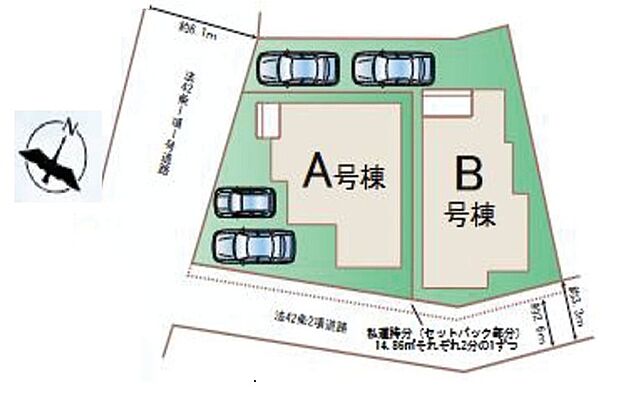 私道負担 14.86m2私道負担割合:2分の1 用途地域 第一種低層住居専用地域
