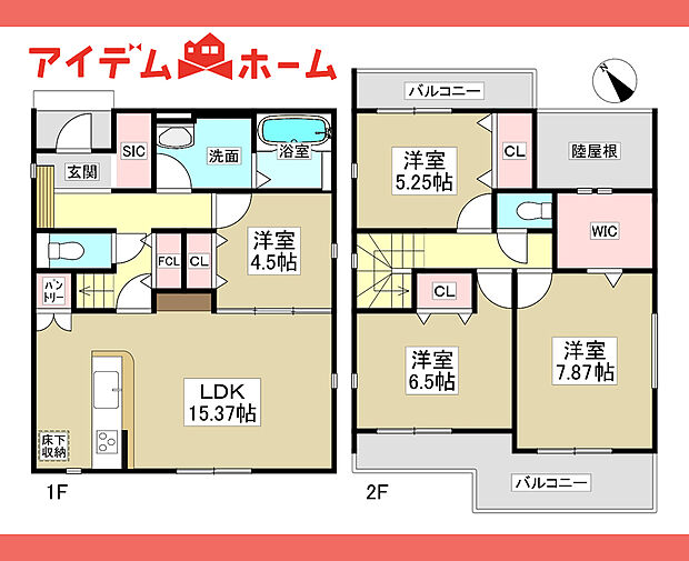 ■長期優良住宅認定物件 ■限定1邸 並列駐車3台可(車種による) ■南庭付の整形地 ■大容量のWIC、FCL、SIC付で収納豊富 ■公園・保育園・小学校近く子育て環境良好