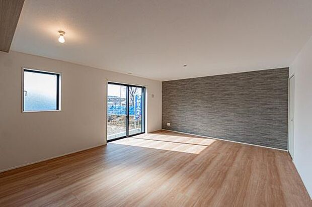 家族がゆったり過ごせる広々リビング。対面キッチンで家族との会話も弾みます。陽光溢れる南バルコニー付。