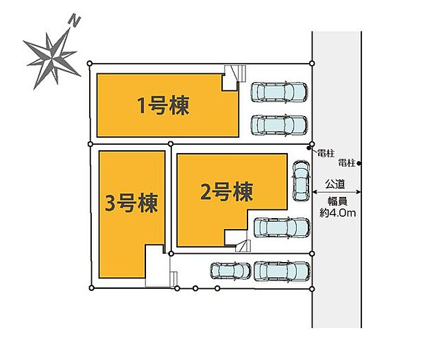 1号棟:北東4m /2号棟:北東4m /3号棟:北東4m