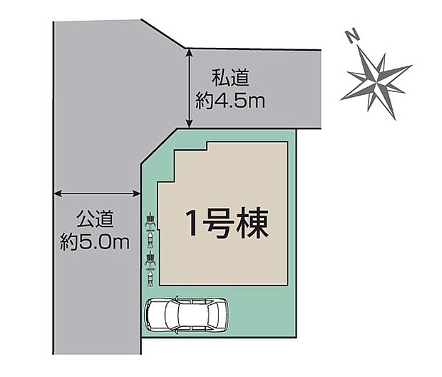 | 土地面積 | 106.53m2<私道負担面積80.22m2 私道負担割合1/13> | ||