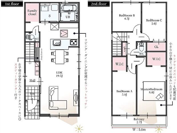 • 【圧倒的な開放感!最大21.7帖のゆとりある大空間LDK1号棟】2号棟は19.5帖の広さを確保し、家族が自然と集まる明るい住まいを実現しました 。