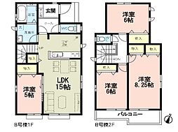 | 間取り | 3LDK 間取り内訳:リビングダイニングキッチン 16.5帖(1階)・その他 3帖(1階)・洋室 8.2帖(2階)・洋室 5.7帖(2階)x2 |