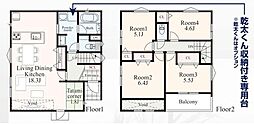 | 間取り | 4LDK 間取り内訳:リビングダイニングキッチン 16.5帖(1階)・洋室 8帖(2階)・洋室 4.5帖(2階)・洋室 5.2帖(2階)・洋室 5.2帖(2階) |