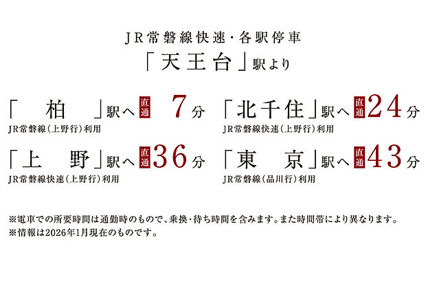 - JR常磐線「我孫子」駅 バス21分 天王台駅バス停 徒歩8分