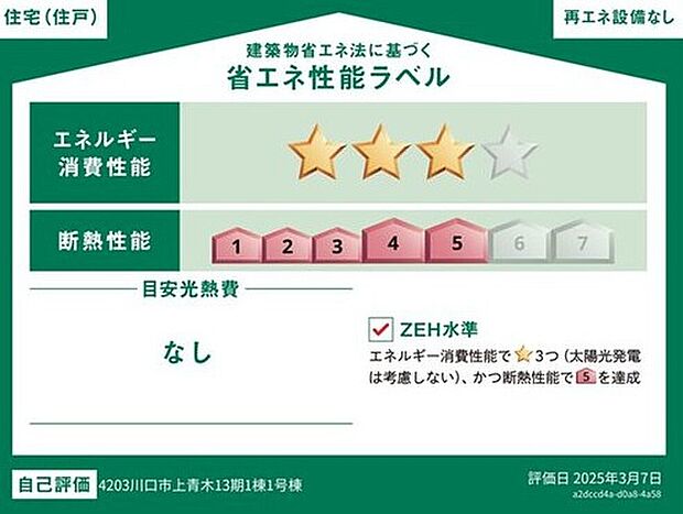 星マークの数が多いほどエネルギー消費性能が高いことを示しています。再エネ設備のない住宅は★0~★4の5段階評価、再エネ設備がある住宅は★0~★6の7段階評価となります。