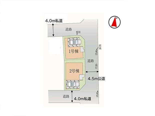 2号棟:東4.5m 南4m /1号棟:東4.5m 北4m