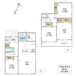 | 間取り | 4LDK 間取り内訳:リビングダイニングキッチン 15帖(1階)・洋室 5.2帖(1階)・洋室 7帖(2階)・洋室 6帖(2階)・洋室 5.2帖(2階) |