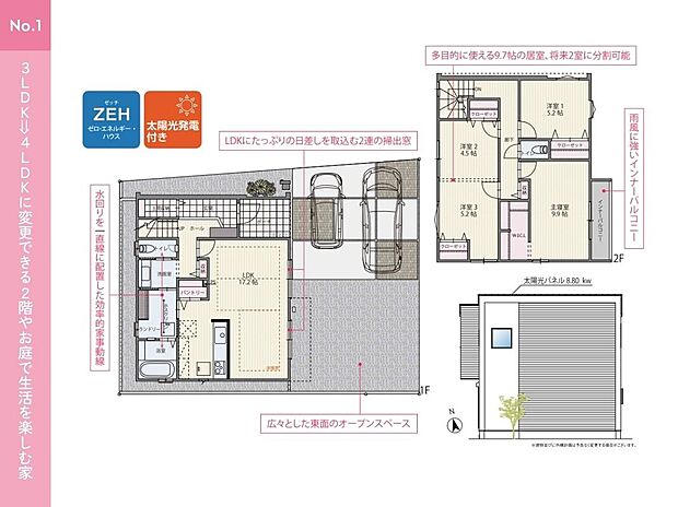 2階には将来的に分割可能な居室があり、家族構成の変化に合わせてご活用いただけます。