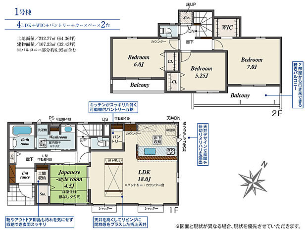 • 「建築条件付き土地」の「建物プラン例」は、土地購入者の設計プランの一例であり、プランの採用可否は任意です。