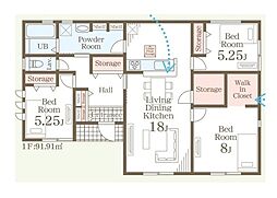 | 間取り | 3SLDK 間取り内訳:リビングダイニングキッチン 18帖(1階)・洋室 5.2帖(1階)・洋室 5.2帖(1階)・洋室 8帖(1階)・収納(1階) |