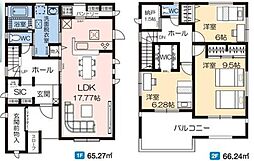 | 間取り | 3LDK 間取り内訳:リビングダイニングキッチン 17.7帖(1階)・洋室 6帖(2階)・洋室 9.5帖(2階)・洋室 6.2帖(2階) |