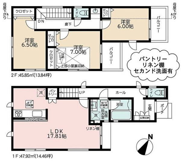 • 「建築条件付き土地」の「建物プラン例」は、土地購入者の設計プランの一例であり、プランの採用可否は任意です。