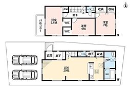 | 間取り | 3LDK 間取り内訳:洋室 7.5帖・洋室 7帖・洋室 6帖・リビングダイニングキッチン 20帖 |