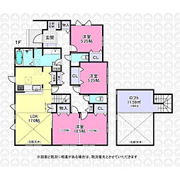 | 間取り | 3LDK(3(4)LDK、ロフト) 間取り内訳:リビングダイニングキッチン 17帖(1階)・洋室 5.2帖(1階)・洋室 5.2帖(1階)・洋室 10.5帖(1階) |