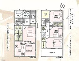 | 間取り | 4LDK 間取り内訳:リビングダイニングキッチン 17.4帖(1階)・洋室 6.8帖(2階)・洋室 6.2帖(2階)・洋室 5帖(2階)・洋室 4.7帖(2階) |