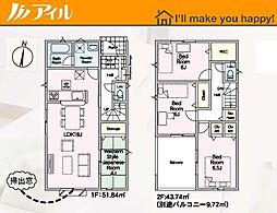 | 間取り | 2SLDK 間取り内訳:リビングダイニングキッチン 16帖(1階)・洋室 9.5帖(2階)・洋室 4.5帖(2階)・収納 6帖(2階) |