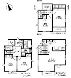 | 間取り | 2SLDK 間取り内訳:洋室 6.5帖(1階)・収納 5.2帖(1階)・収納 6帖(1階)・リビングダイニングキッチン 18帖(2階)・洋室 4.8帖(2階) |