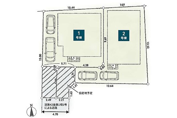 • 「建築条件付き土地」の「建物プラン例」は、土地購入者の設計プランの一例であり、プランの採用可否は任意です。