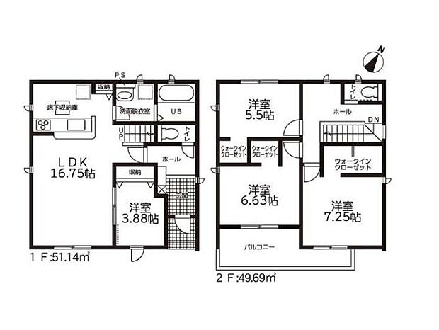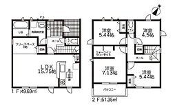 | 間取り | 4LDK(WIC) 間取り内訳:リビングダイニングキッチン 16.7帖(1階)・洋室 3.8帖(1階)・洋室 5.5帖(2階)・洋室 6.6帖(2階)・洋室 7.2帖(2階) |