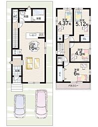 | 間取り | 4LDK 間取り内訳:和室 6畳(1階)・リビングダイニングキッチン 16帖(1階)・洋室 8.3帖(2階)・洋室 5.8帖(2階)・洋室 5.3帖(2階) |