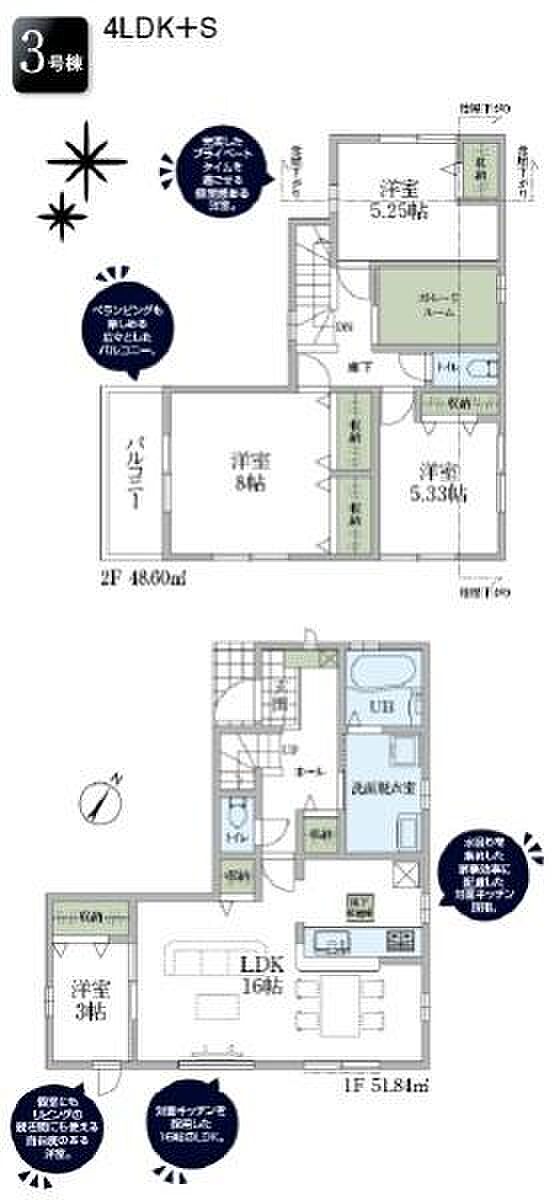 ■家族の様子を見守れる対面キッチン■室内広く使える居室収納■家族みんなが使える大容量の納戸あり