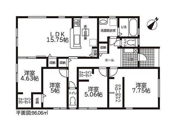 | 間取り | 4LDK(WIC) 間取り内訳:洋室 5帖(1階)・洋室 5帖(1階)・洋室 7.7帖(1階)・リビングダイニングキッチン 15.7帖(1階)・洋室 4.6帖(1階) |