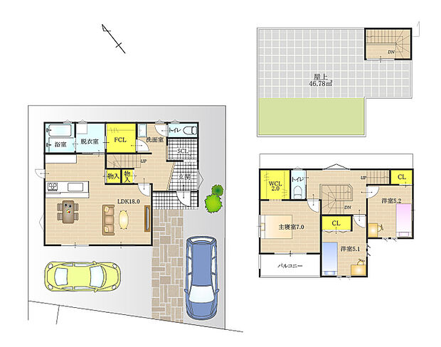 公園がある周辺環境充実の子育て世代にも便利な閑静な分譲地内の屋上つき建売モデルです! お子さんの遊び場やドッグラン、家族や仲間とのBBQなど多目的に活用できる屋上は、気軽にソト時間を楽しめるプライベート空間! 1階全体を回遊できる家事ラクな間取りで、脱衣室横には洗面室へとつながるファミリークローゼットを設け、身支度からお出かけまでスムーズな間取りとなっています!