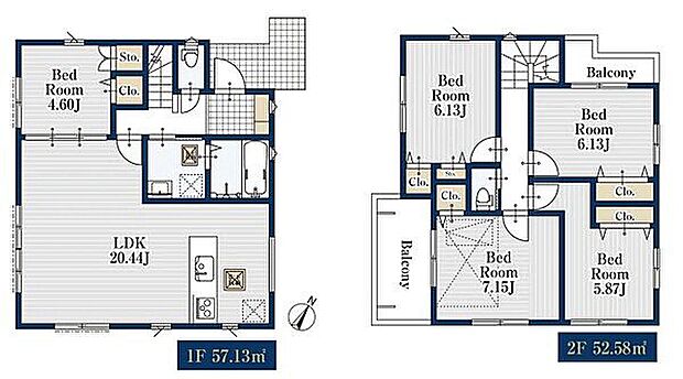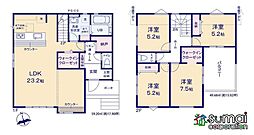 お車2台分のカースペース付き。LDKは広々20畳の2階建て新築戸建です。