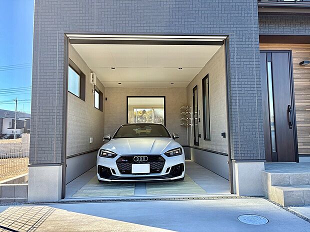 • 【1号棟ガレージ】大切に守り、美しく魅せるビルトインガレージ 。室内やホールから直接出入りできる便利な動線を確保しました 。照明付きの洗練された空間で、天候を気にせず趣味の時間を心ゆくまで楽しめます。