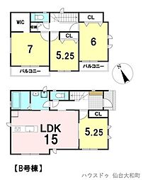 間取り内訳:リビングダイニングキッチン 15帖・洋室 5.2帖・洋室 7帖・洋室 5.2帖・洋室 6帖