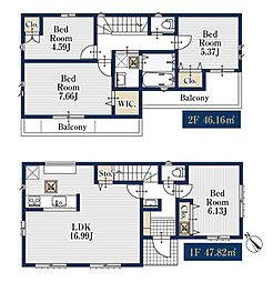 | 間取り | 92R 間取り内訳:リビングダイニングキッチン 15帖(1階)・洋室 4.5帖(1階)・洋室 6帖(2階)x2・洋室 7.1帖(2階) |
