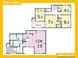 間取り内訳:リビングダイニングキッチン 16帖(1階)・洋室 5帖(1階)・洋室 6帖(2階)x2・洋室 7.1帖(2階)