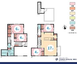 間取り内訳:洋室 6.2帖(1階)・洋室 6帖(1階)・洋室 4帖(2階)・洋室 4.5帖(2階)・リビングダイニングキッチン 17.5帖(2階)