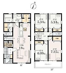 | 間取り | 4LDK 間取り内訳:リビングダイニングキッチン 19帖(1階)・洋室 7.5帖(2階)・洋室 6帖(2階)・洋室 4.5帖(2階)・洋室 4.5帖(2階) |