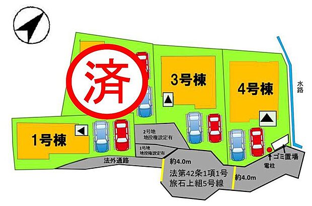 • 主たる設備概要:電気/上水道/公営水道/下水道/本下水/オール電化/側溝