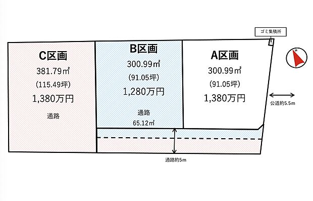 土地面積 300.99m2(91.05坪)~381.79m2(115.49坪)