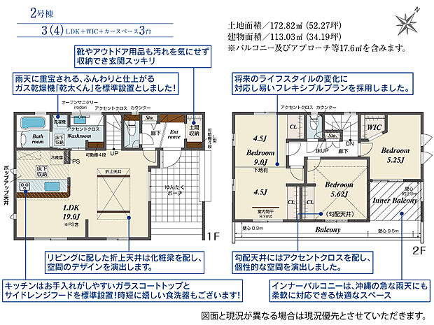 | 土地面積 | 172.82m2(約52.27坪)~175.06m2(約52.95坪) | ||