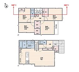 | 間取り | 2SLDK 間取り内訳:収納 3.1帖(1階)・リビングダイニングキッチン 16.1帖(2階)・洋室 5.6帖(3階)・洋室 4.8帖(3階)・収納 4.3帖(3階) |