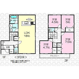 間取り内訳:リビングダイニングキッチン 18帖(1階)・和室 4.5畳(1階)・洋室 4.7帖(2階)・洋室 5帖(2階)・洋室 7.5帖(2階)x2