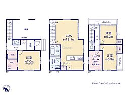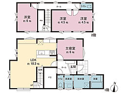 | 間取り | 4LDK 間取り内訳:リビングダイニングキッチン 18.5帖(1階)・洋室 5.2帖(2階)・洋室 6.5帖(2階)・洋室 5帖(2階)・洋室 5.2帖(2階) |