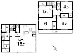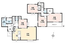 | 間取り | 4LDK 間取り内訳:リビングダイニングキッチン 16帖(1階)・洋室 4帖(1階)・洋室 8帖(2階)・洋室 5.2帖(2階)x2 |